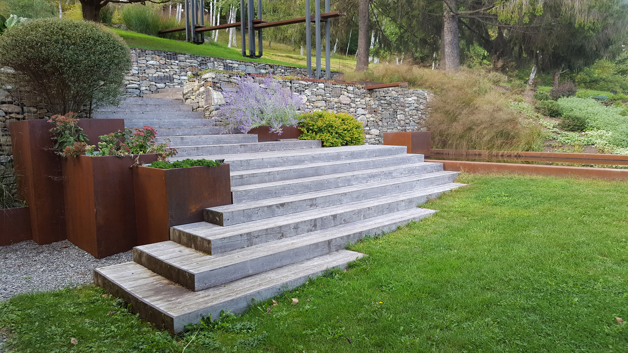 En tirant parti d’un dénivelé de 35 pieds, nous avons sculpté une série de parterres le long du flanc de la montagne, chacun doté d’une ambiance distincte.